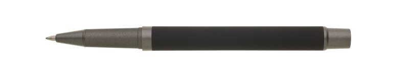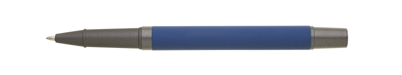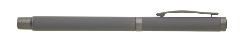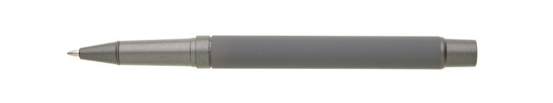 Elegantní kovový roller RIFLO SOFT v bílé barvě s tmavě šedými doplňky a pogumovaným povrchem. Keramická náplň, která píše modře.