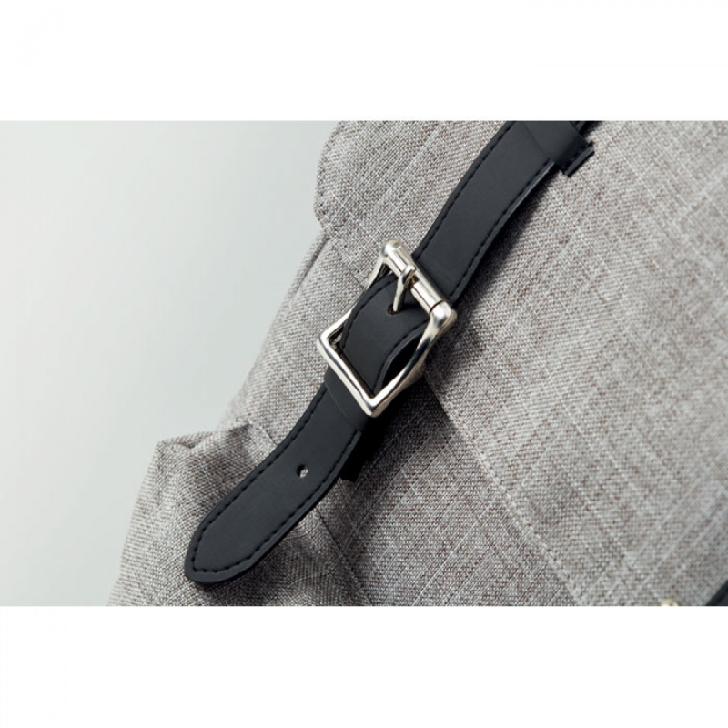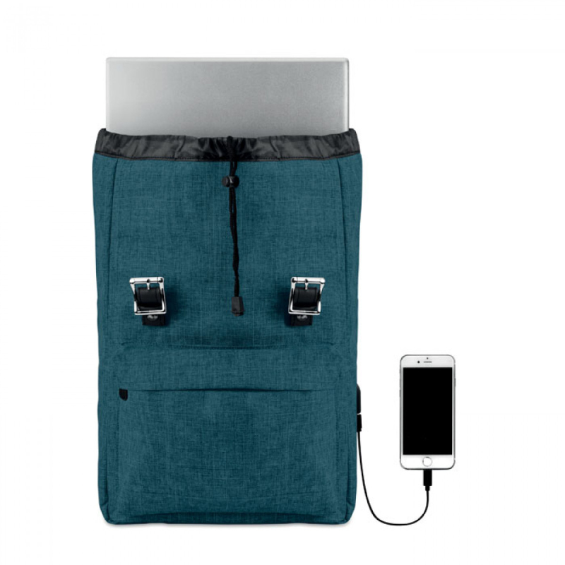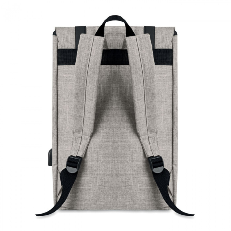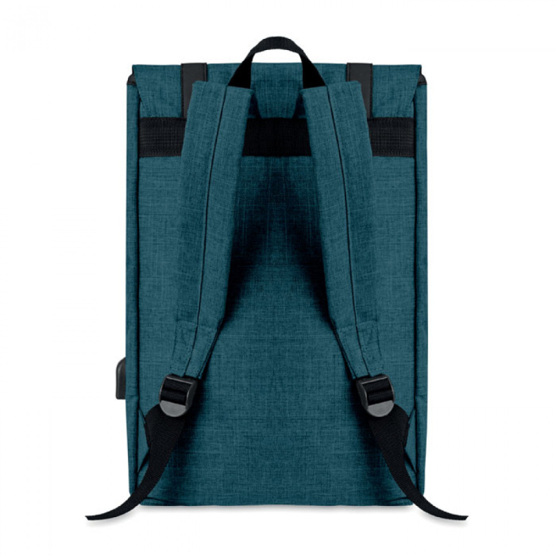Batoh z 600D dvoubarevného polyesteru s vyztuženým ramením popruhem. Jeden oddíl pro 15 palcový laptop. USB nabíjecí kabel. Magnetické zapínání a přední kapsa na zip.