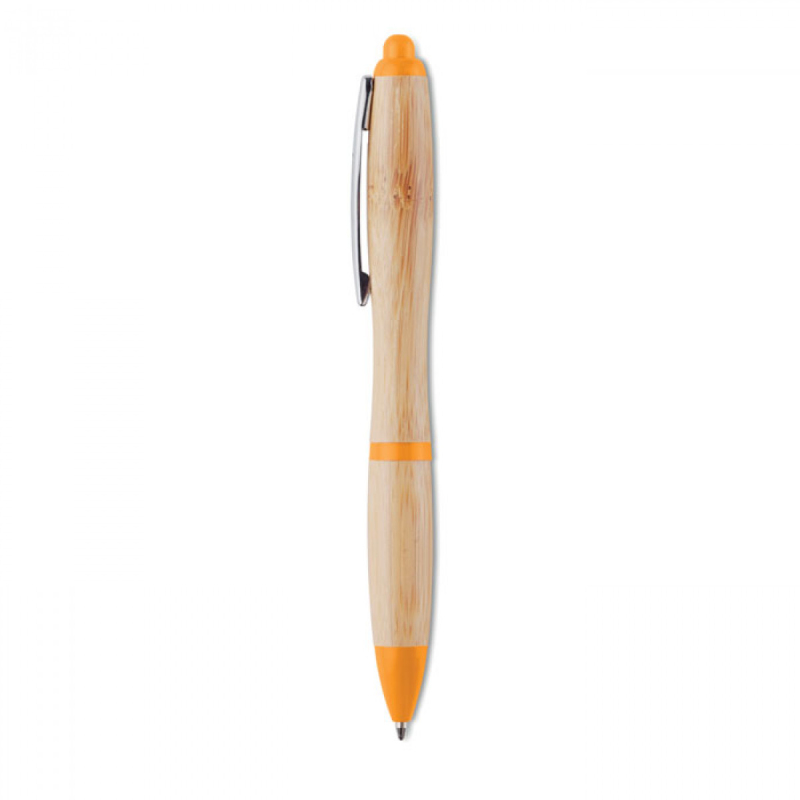 Kuličkové pero s bambusovým tělem a ABS částmi. Modrá náplň.