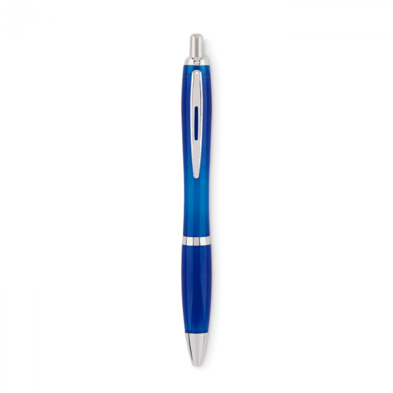 Tlačítkové kuličkové pero z RPET. Modrý inkoust.