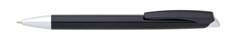 Plastová propiska z kolekce DESIGN, barevné tělo s matnými doplňky s atypickým zapínáním. Náplň velkoobsahová, modře píšící.