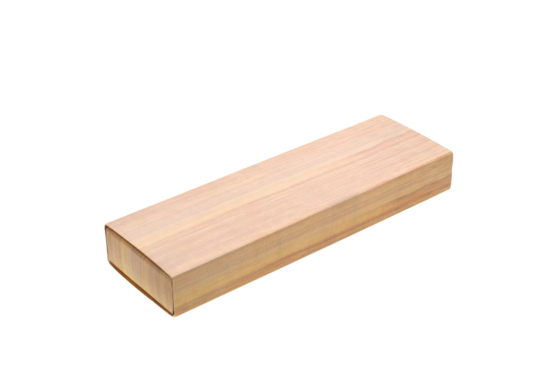 Propiska a mikrotužka v sadě mají bambusové tělo a matné šedé doplňky. Krabička papírová, potištěná motivem bambusového dřeva.