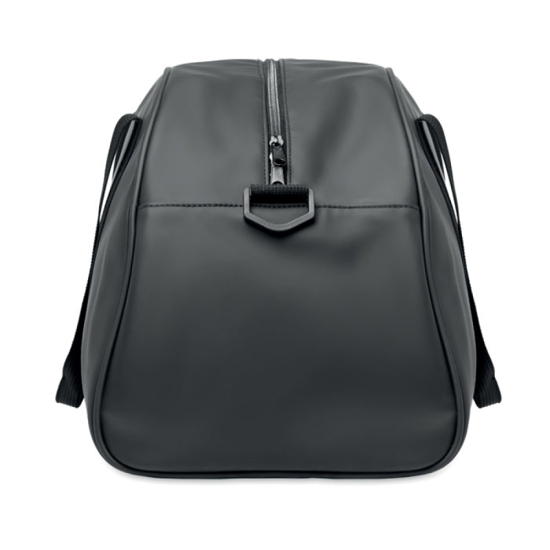 Sportovní taška z měkkého PU s pěnovou výztuhou dna. Jedna hlavní přihrádka, přední kapsa na zip a vnitřní kapsa na zip. Podšívka z polyesteru 210D RPET. 2 rukojeti a jeden nastavitelný a odnímatelný ramenní popruh.