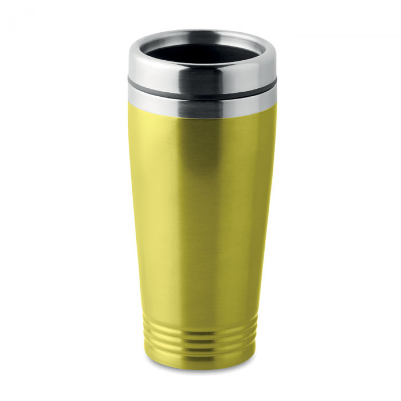 Nerezový dvoustěnný cestovní hrnek s černým PP víčkem. Objem 400 ml.