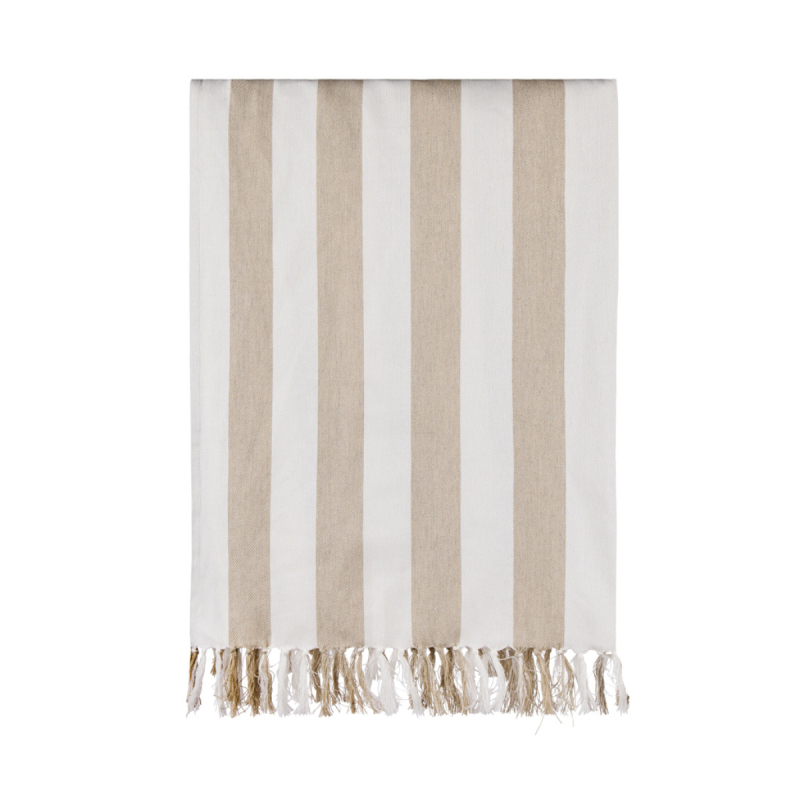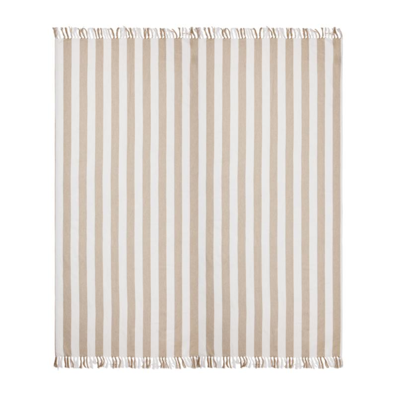 Tato rodinná hammam osuška s klasickým dvoubarevným pruhovaným vzorem a třásněmi na kratších stranách nabízí velkorysé rozměry 180 × 180 cm, takže je ideální ke sdílení s blízkými – ať už na pláži, nebo u bazénu. Je vyrobena z lehké a prodyšné tkaniny o gramáži 200 g/m², která kombinuje pohodlí bavlny s rychleschnoucími vlastnostmi polyesteru. Osuška je certifikovaná podle Global Recycled Standard (GRS), což zaručuje, že celý proces výroby recyklovaných materiálů splňuje přísné požadavky. Produkt obsahuje 70 % recyklované bavlny a 29 % recyklovaného polyesteru s certifikací GRS.