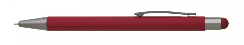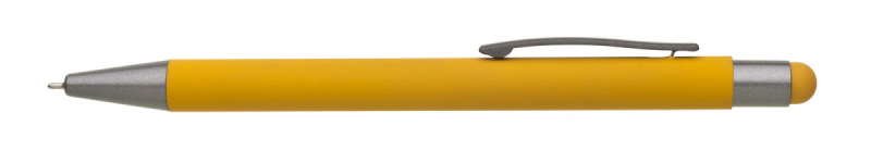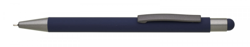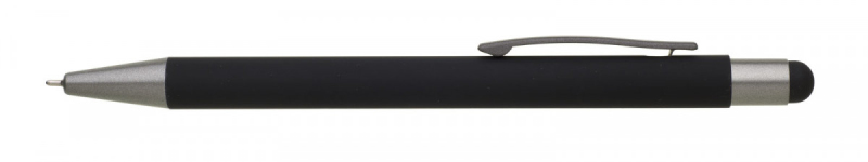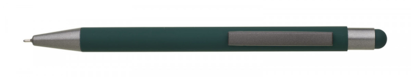 Kovová propiska s hnědo-černými doplňky, pogumovaným povrchem a touch koncem v barvě těla. Náplň semigel s mikrohrotem.