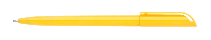 Plastové, kuličkové pero Rotate ve žluté barvě se širokým, krátkým klipem a otočným mechanismem.