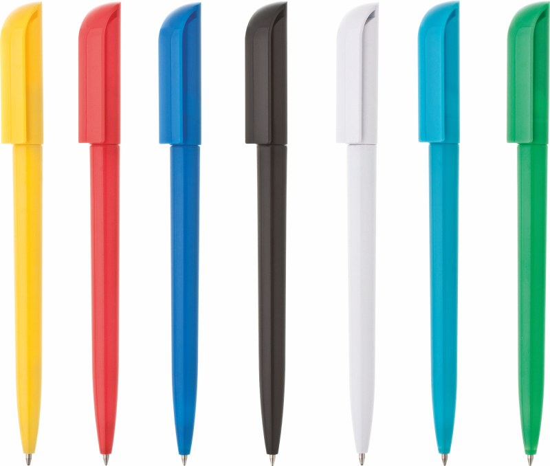 Plastové, kuličkové pero Rotate v černé barvě se širokým, krátkým klipem a otočným mechanismem.