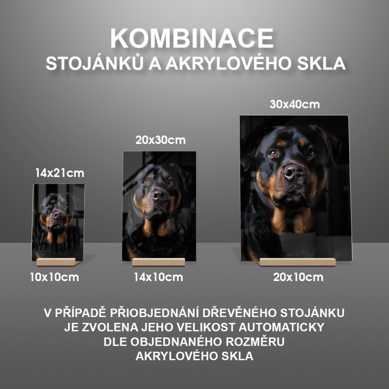 V případě přiobjednání dřevěného stojánku je zvolena jeho velikost automaticky dle objednaného rozměru akrylového skla viz produktové foto.