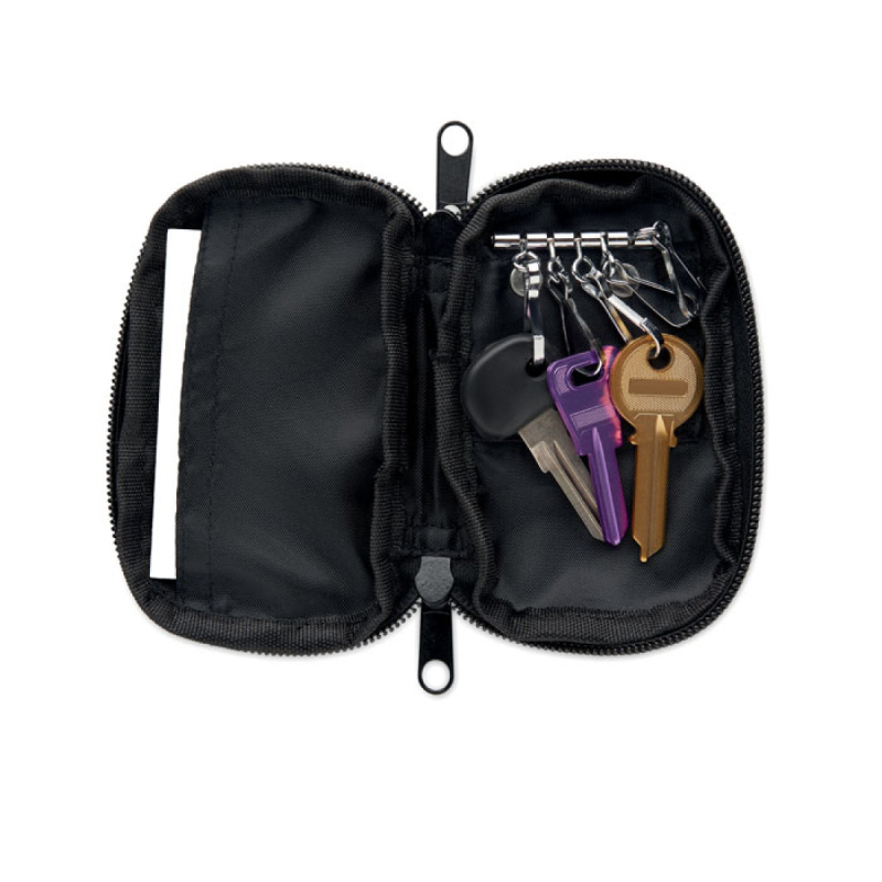 Pouzdro na klíče se zapínáním na zip. Vyrobeno z 300D RPET s podšívkou z 210D RPET. 5 karabinek na klíče.