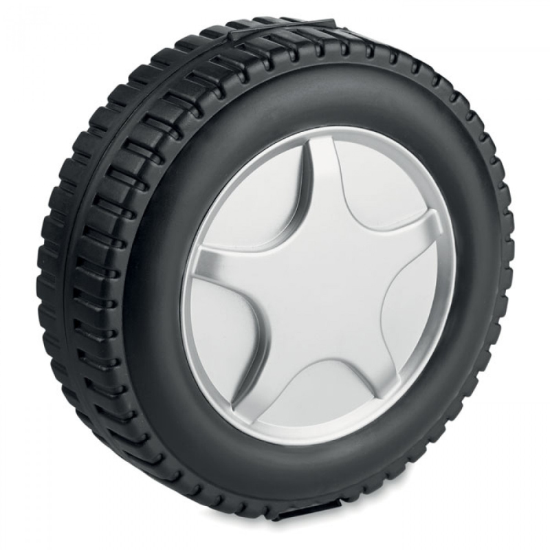 25 dílná sada nářadí ve tvaru pneumatiky, včetně 1 nástavce, 1 šroubováku, 1 kleští, 5 zásuvek, 3 šestihranných klíčů, 10 ks bitů, 2 šroubováků a 1 pásky.