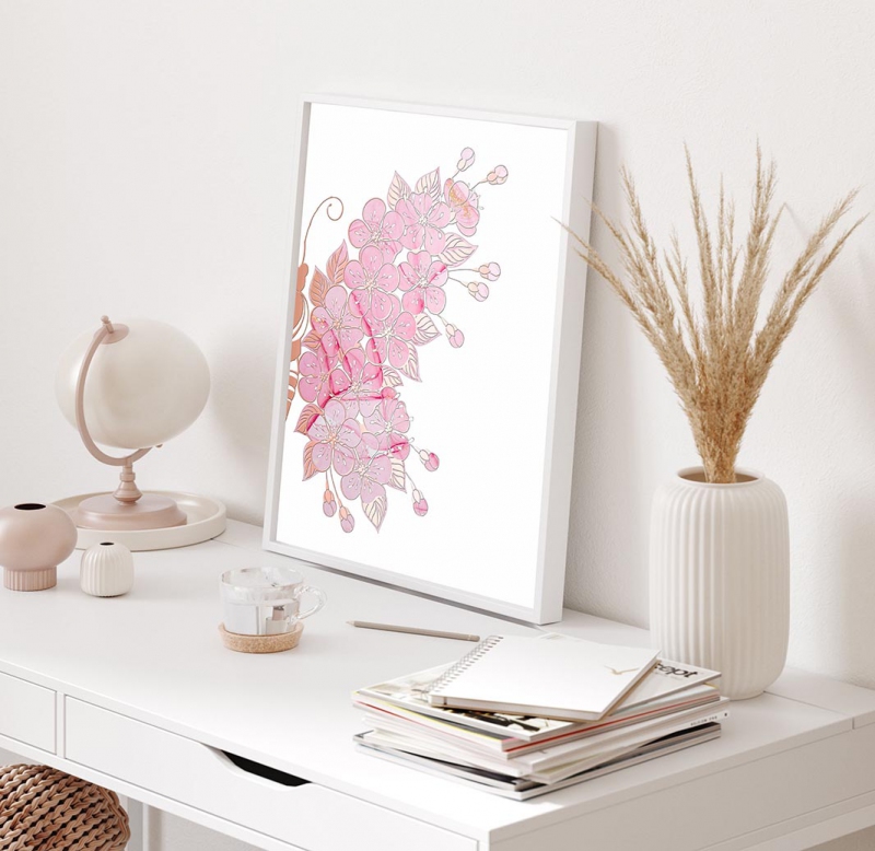 Růžový květovaný motýl 3D Růžový Plakát
