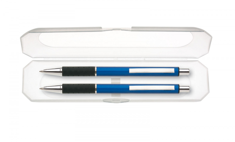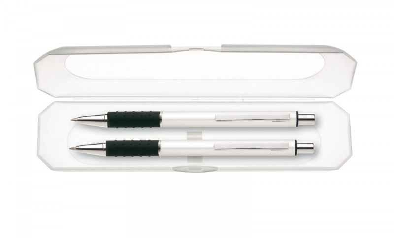 Sada BIANA červená je vyrobená z hliníku, tužky mají černý, gumový grip a chromové doplňky. To vše dodáváno v plastovém boxu.