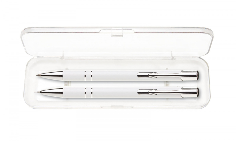 Sada LOBIA žlutá - tužky jsou vyrobeny z hliníku, mají na těle 2 stříbrné proužky a stříbrné doplňky jako jsou špička, klip a cvakátko. Vše dodáváno v plastovém, transparentním boxu.