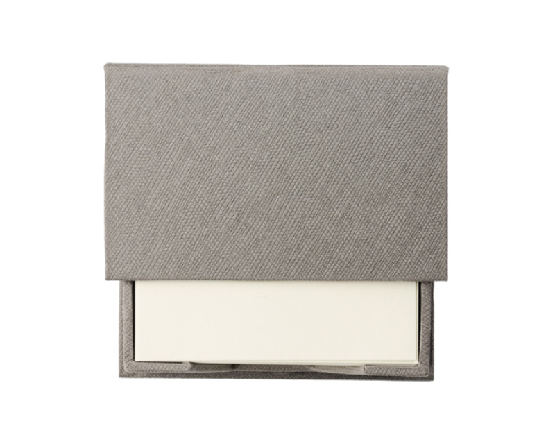 Praktické kostky s poznámkami pro váš stůl vyrobené z šedého papíru s kostkovanou texturou. Kostky se skládají z 300 poznámek. Uvnitř víka jsou samolepící poznámky ve 5 barvách.