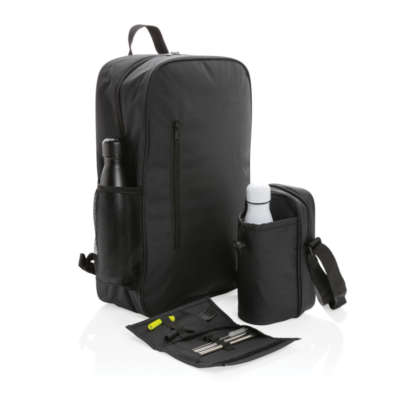 Sada Tierra obsahující 2ks brček z nerezavějící oceli, kartáč na čištění, vidličku a lžičku 2 v 1 a 2 zahnuté silikonové části brčka (ve dvou barvách pro rozeznání) pro pohodlné pití. Balené v praktickém pouzdře s Velcro zapínáním. Ideální pro snižování spotřeby jednorázových plastových produktů. Vhodné do myčky nádobí. Vnější část pouzdra vyrobena z 600D polyesteru, vnitřní část z 210D polyesteru. Bez PVC.