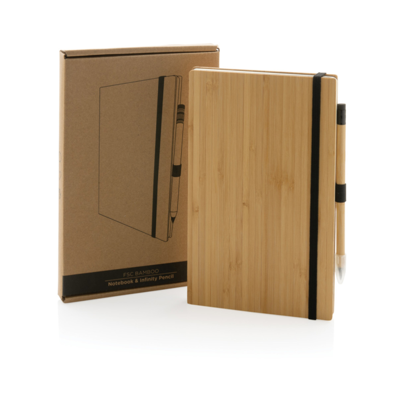 Originální sada nekonečné tužky a zápisníku z FSC® certifikovaného bambusu. Unikátní tužka plnohodnotně nahradí tradiční dřevěné tužky. Díky využití grafitové špičky je psaní identické jako klasickou tužkou, ovšem délka psaní je prodloužena až na 20 000m. Funguje tedy jako klasická tužka, lze gumovat, její výdrž je však mnohonásobně vyšší, že dokáže nahradit až 100 běžných tužek. Na její výrobu navíc nebylo použito žádné dřevo, pouze bambus. Zápisník obsahuje 80 stran/160 listů recyklovaného papíru s gramáží 70g/m2. Baleno v FSC® kraftové dárkové krabičce.