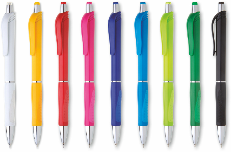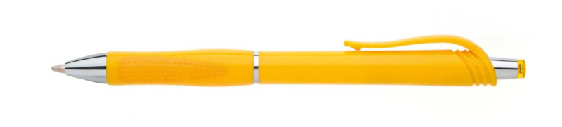 Žlutá, plastová propiska s pochromovanými doplňky jako jsou klip, tělo cvakátka a proužek uprostřed těla tužky. Grip je částečně pogumovaný v barvě tužky, stejně jako klip a vrchní část cvakátka. Náplň X20, hrot 0,5mm.
