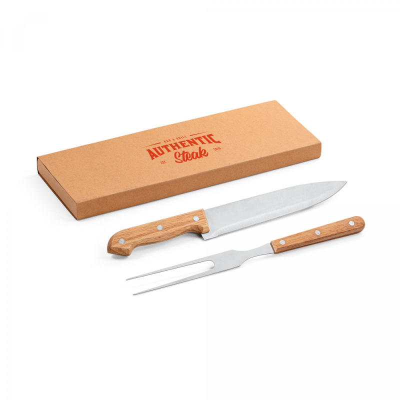 Dvoudílná grilovací sada z nerezové oceli a bambusu. Sada se 2 nádobami dodávanými v krabičce z kraftového papíru. Krabička: 340 x 115 x 25 mm