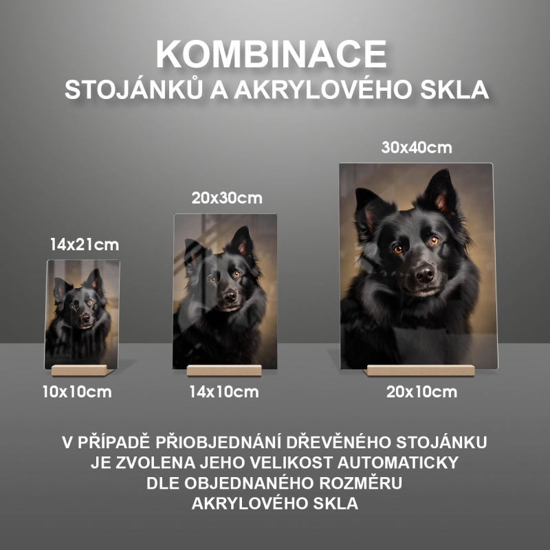 V případě přiobjednání dřevěného stojánku je zvolena jeho velikost automaticky dle objednaného rozměru akrylového skla viz produktové foto.