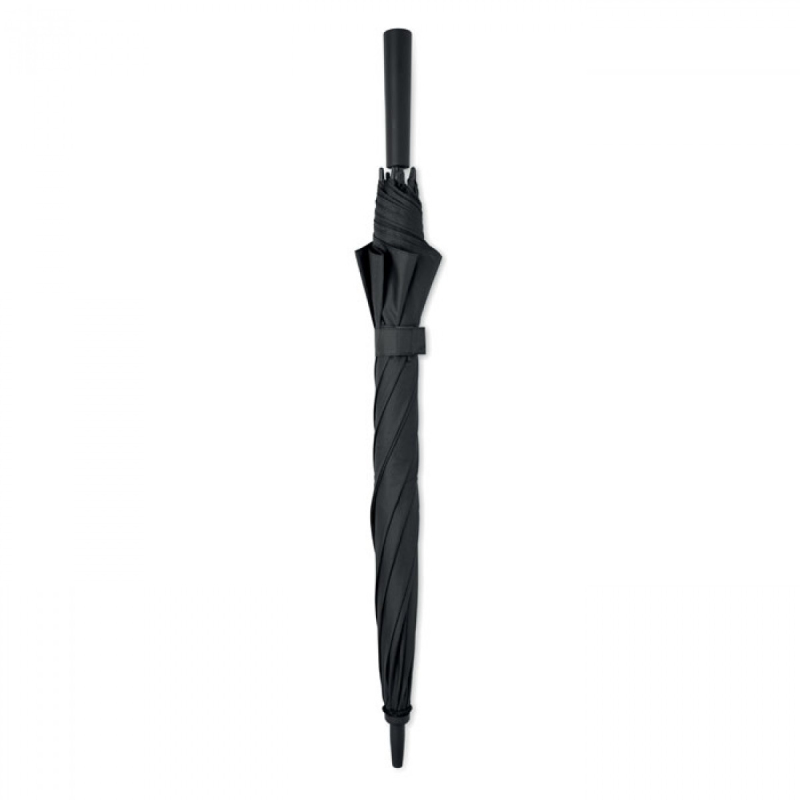 Automatický 23palcový větru odolný deštník z materiálu 190T pongee. Sklolaminátový rám, černě pokovená tyč a plastové koncovky. Rukojeť z ABS s gumovou povrchovou úpravou. Manuální zavírání.