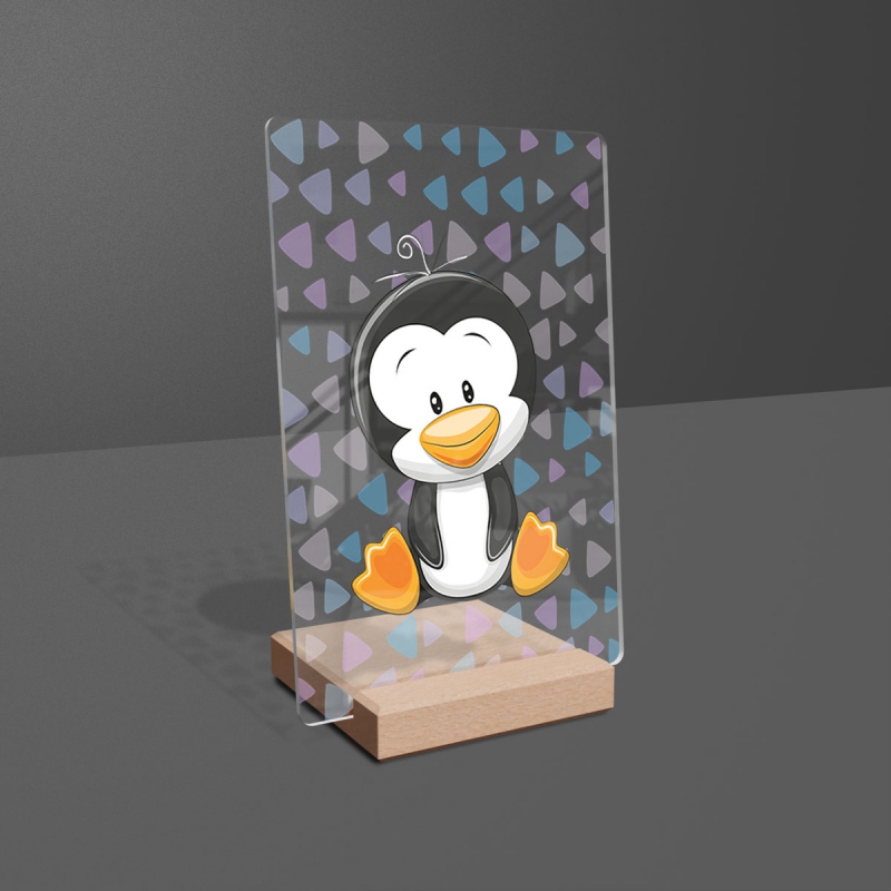 Na produktovém fotu vyobrazena nejoblíbenější varianta akrylového skla 14x21/21x14cm a dřevěný stojánek 10x10cm.
