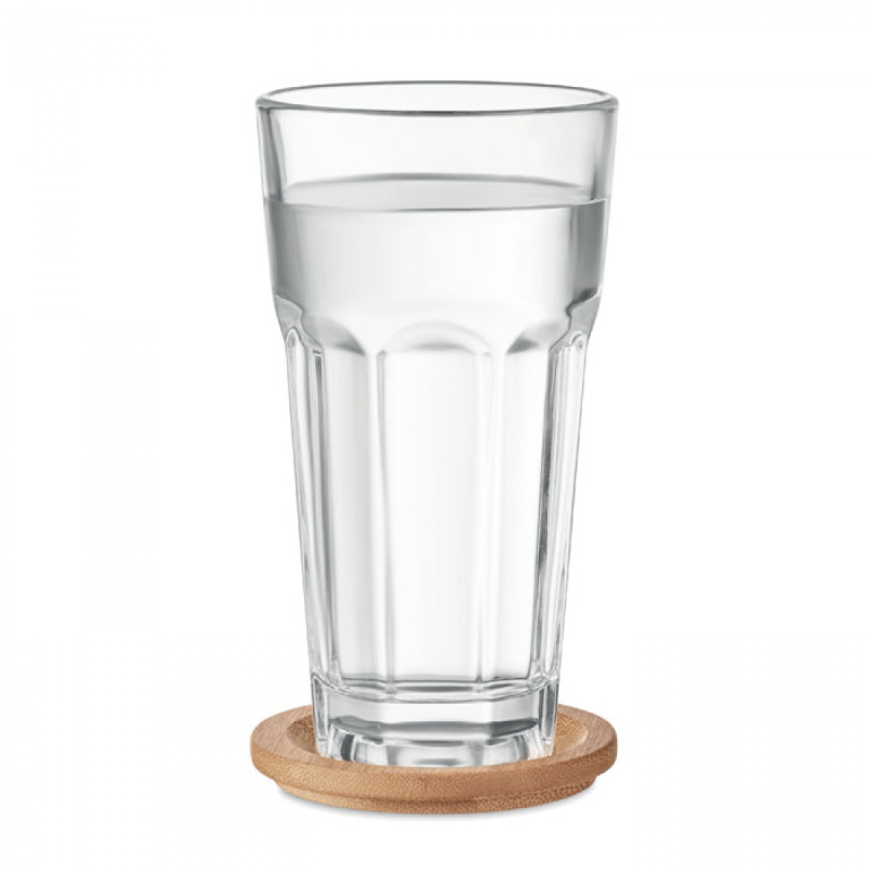 Opakovaně použitelná sklenice s bambusovým víčkem, který lze použít i jako podtácek. Objem: 300 ml.