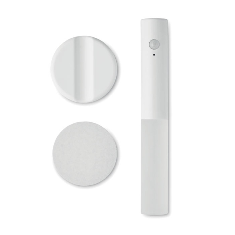 Nouzové světlo s pohybovým senzorem. Vyrobeno z ABS a akrylu. Magnetická základna. Vestavěná dobíjecí baterie 300 mAh a nabíjecí kabel. Základnu lze připevnit na stěnu pomocí přiložené 3M samolepky.