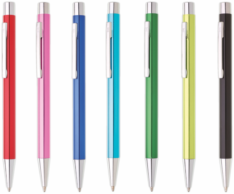 SFERA, elegantní červená hliníková propiska z kolekce GABRIELIS, klip se značkou ][.