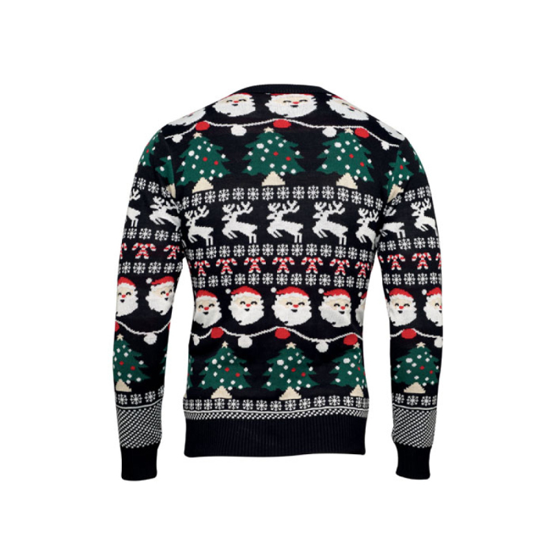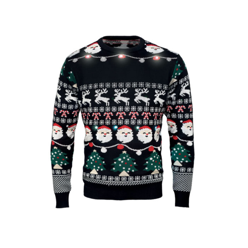 Vánoční svetr z akrylu s 10 LED světly. Velikost: S/M. Ukažte se v práci nebo na rodinné štědrovečerní večeři stylově v tomto svátečním svetru. Vyjímatelná přihrádka na baterie. Součástí balení jsou 2 baterie CR2032.