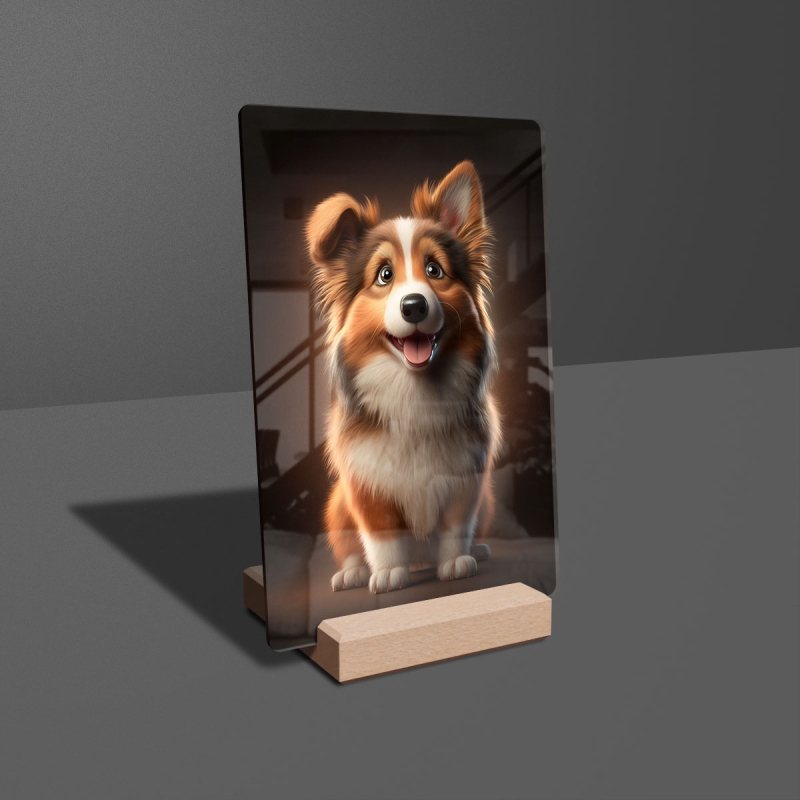 Dárková deska s digitální grafikou psa z akrylového skla.