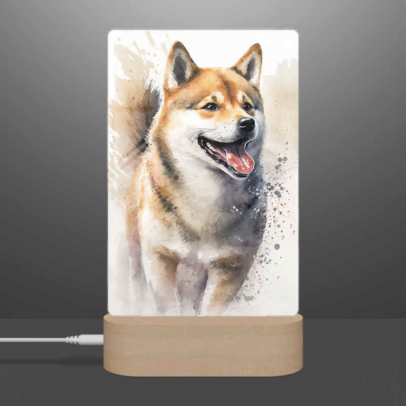 Součástí balení je akrylové sklo dle výběru, dřevěný RGB LED stojánek a napájecí USB kabel.