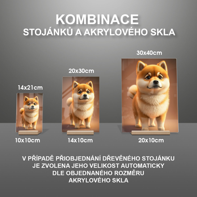 V případě přiobjednání dřevěného stojánku je zvolena jeho velikost automaticky dle objednaného rozměru akrylového skla viz produktové foto.
