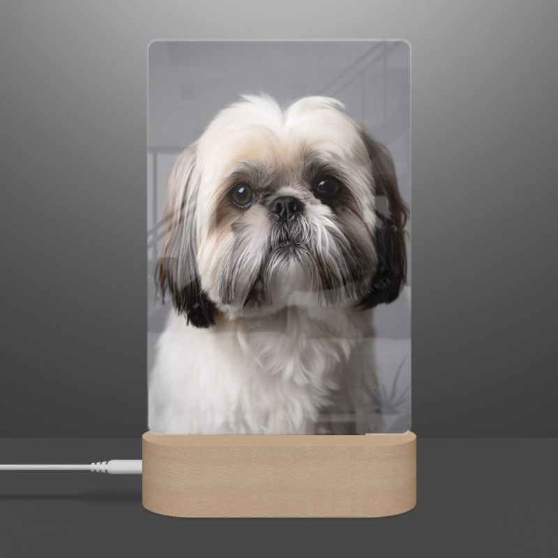 Součástí balení je akrylové sklo dle výběru, dřevěný RGB LED stojánek a napájecí USB kabel.