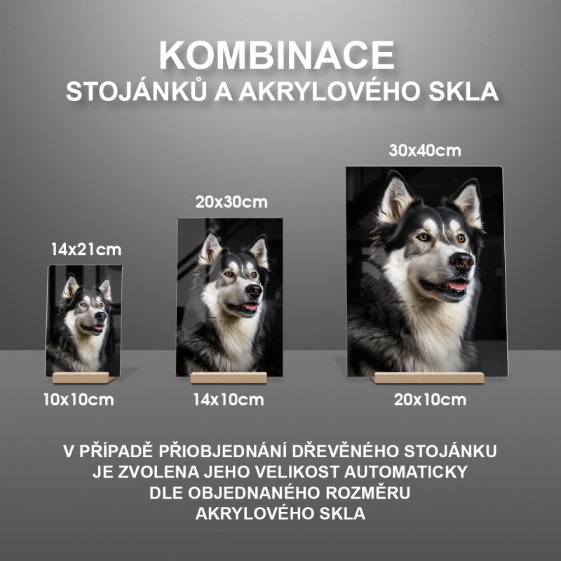 V případě přiobjednání dřevěného stojánku je zvolena jeho velikost automaticky dle objednaného rozměru akrylového skla viz produktové foto.