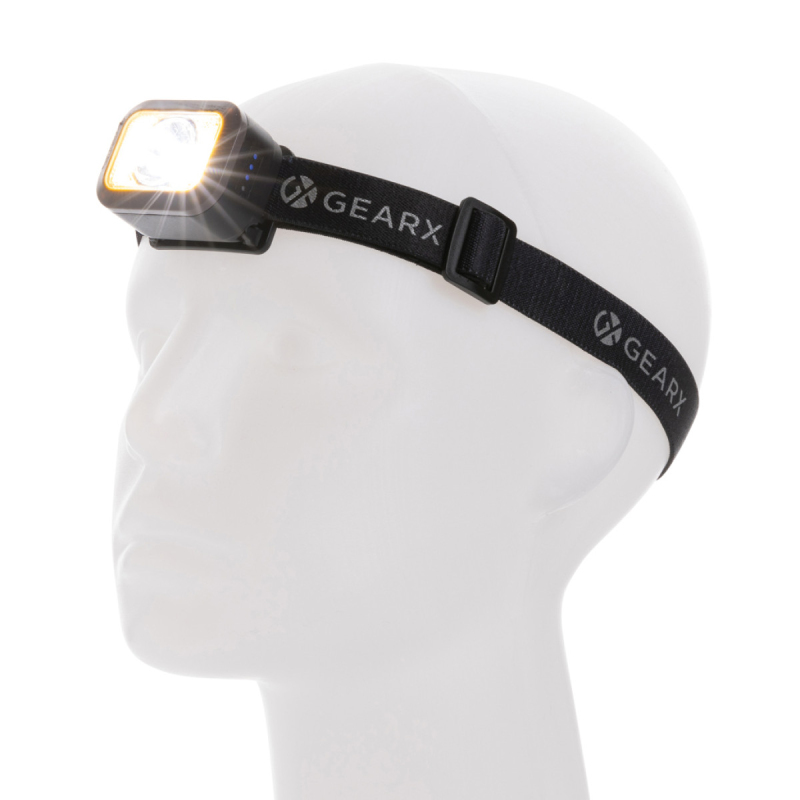 Výkonná čelovka s COB a LED světlem. Svítivost 250 lumenů, dosvit na vzdálenost až 70 m. Voděodolnost IPX4. Přizpůsobitelný popruh přes hlavu. Opakovaně dobíjitelná baterie s kapacitou 800 mAh pro používání po dobu až 3h na jedno plné nabití skrze USB C. 6 režimů zahrnující 100%-50% intenzitu a SOS režim. Vyrobené z RCS recyklovaného ABS plastu. RCS (Recycled Claim Standard) je globální standard, který umožňuje ověřit použití recyklovaného materiálu v produktu napříč celým dodavatelským řetězcem. Celkový podíl recyklátu dle váhy produktu: 23 %.