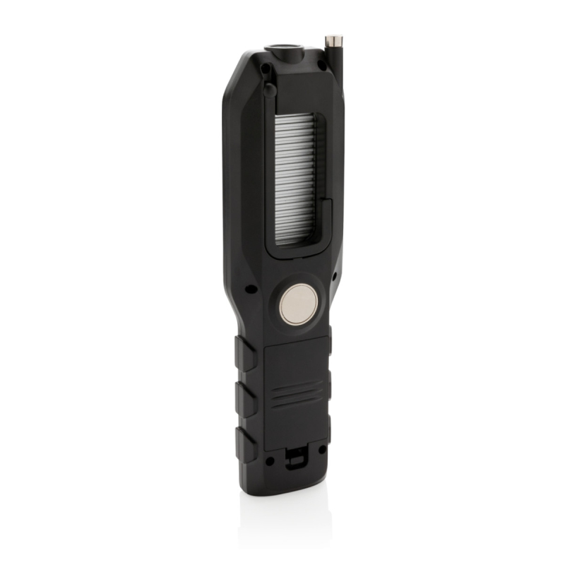 Multifunkční pracovní světlo s 1W LED a dodatečným COB světlem. COB disponuje nastavitelným kloubem umožňující ideální osvětlení pracovního prostoru. Magnet na zadním konci pro upevnění svítilny na kovové plochy. Vysouvací teleskop s magnetem pro sběr drobných kovových předmětů. LED světlo s 80 lumeny a svítivostí na vzdálenost až 50m. COB světlo s 230 lumeny. Včetně baterií.
