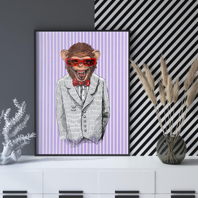 Šimpanz s červenými brýlemi 3D Plakát