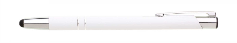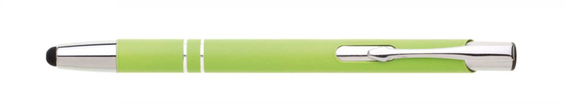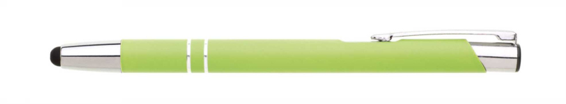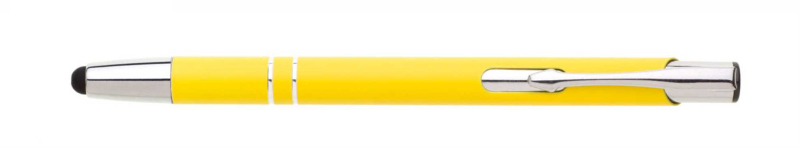 Hliníková propiska se stříbrnými doplňky a měkkým pogumovaným soft povrchem v žluté barvě s touch špičkou..