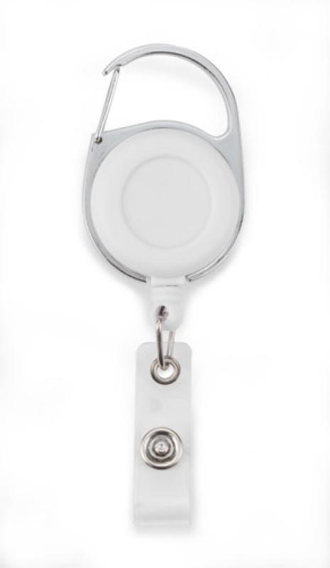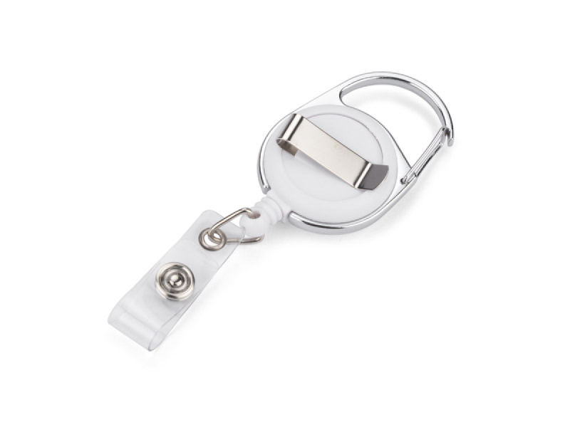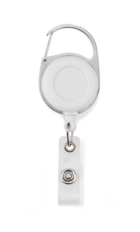 Plastiková skipas s kovovým háčkem a karabínou s vystřelovacím drátem. Můžete na něj připnout ID nebo jiný dokument.