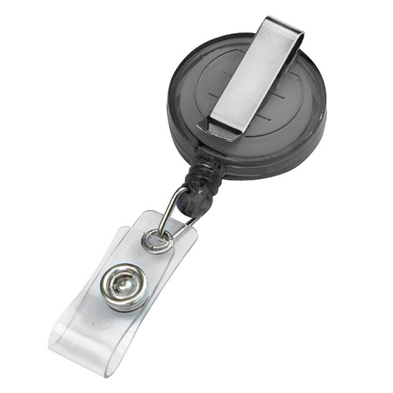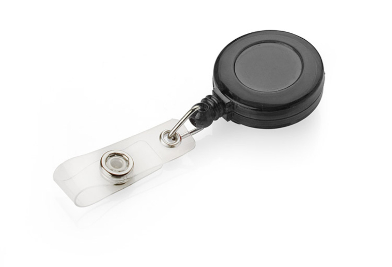 Plastová skipas s kovovou západkou, šňůrka, na kterou můžete umístit odznak nebo jiný dokument.