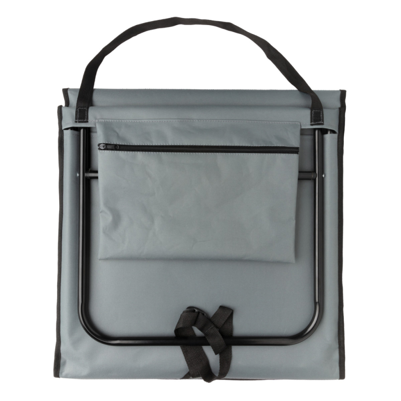 Lehké přenosné lehátko s pevným kovovým rámem a plátnem z polyesteru 600D. Ve složeném stavu je kompaktní, skladné a díky ramenním popruhům i snadno přenosné. V rozloženém stavu pak poskytuje pohodlné místo pro relaxaci. Kapsa na zip na zadní straně pro uschování slunečních brýlí, telefonu nebo opalovacího krému.