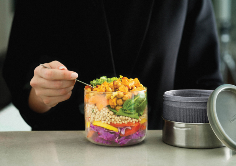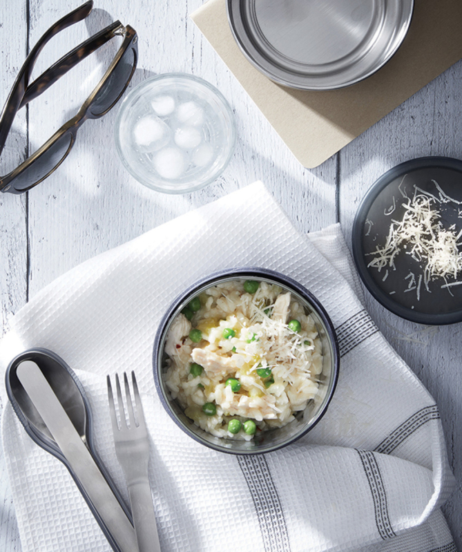 Nepropustná lehká skleněná miska na jídlo. Silikonové víko zabraňuje znečištění při ohřívání v mikrovlnné troubě. Spodní část z odolného PP plastu a dřeva pro pohodlnou manipulaci a zabránění popálení. Šroubovací víko z nerezové oceli zajišťuje nepropustné těsnění. Vhodné do myčky nádobí.