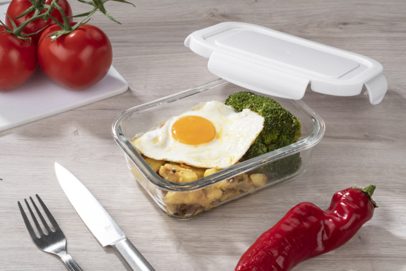 Dóza na potraviny LASO je vyrobená z vysoce kvalitního borosilikátového skla, které je žáruvzdorné. Dóza má bílé umělohmotné víčko uzavírané na čtyři klipy. Může se používat jako krabice na potraviny, svačinový boxík, a navíc se uložené v něm potraviny mohou zahřívat v troubě. Objem 500 ml.