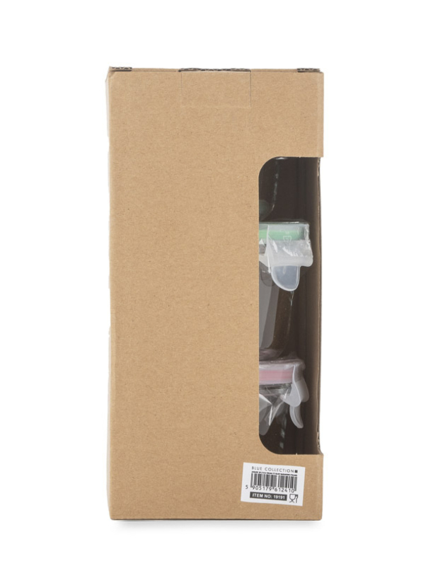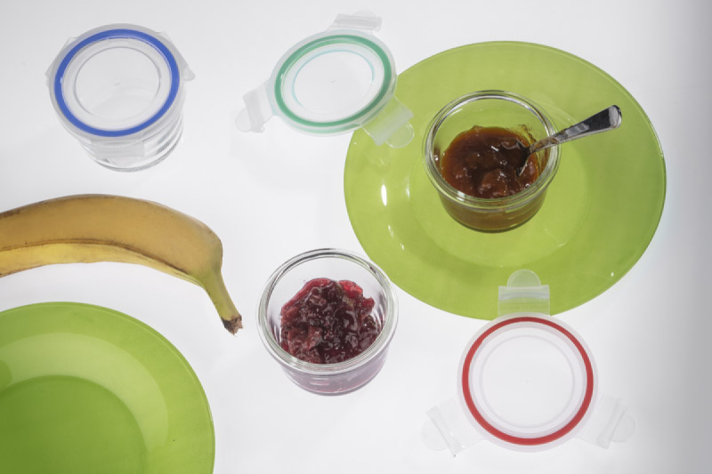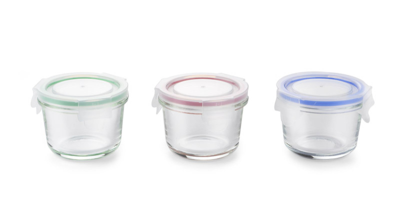 Sada PESTO obsahuje 3 sklenice z borosilikátového skla s průhledným víkem uzavřeným 3 háčky. Každý kryt má těsnění v jiné barvě. Mohou být použity pro skladování potravin a ohřívání potravin při vysokých teplotách. Kapacita jedné nádoby je 120 ml.