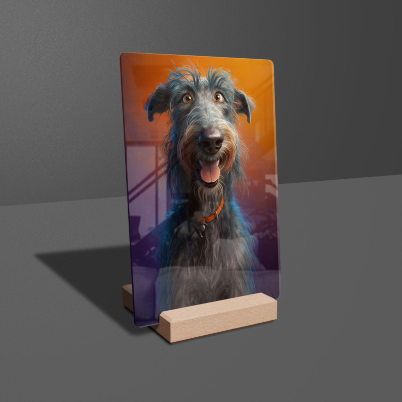 Dárková deska s digitální grafikou psa z akrylového skla.