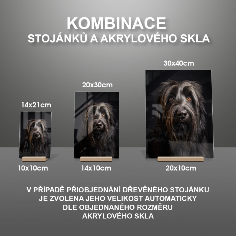 V případě přiobjednání dřevěného stojánku je zvolena jeho velikost automaticky dle objednaného rozměru akrylového skla viz produktové foto.