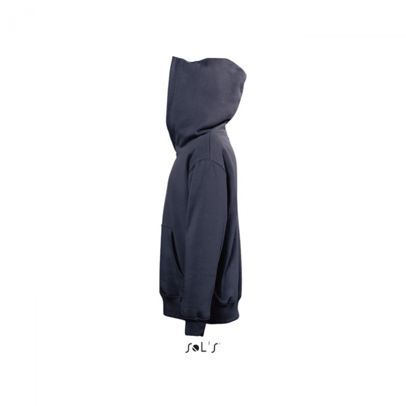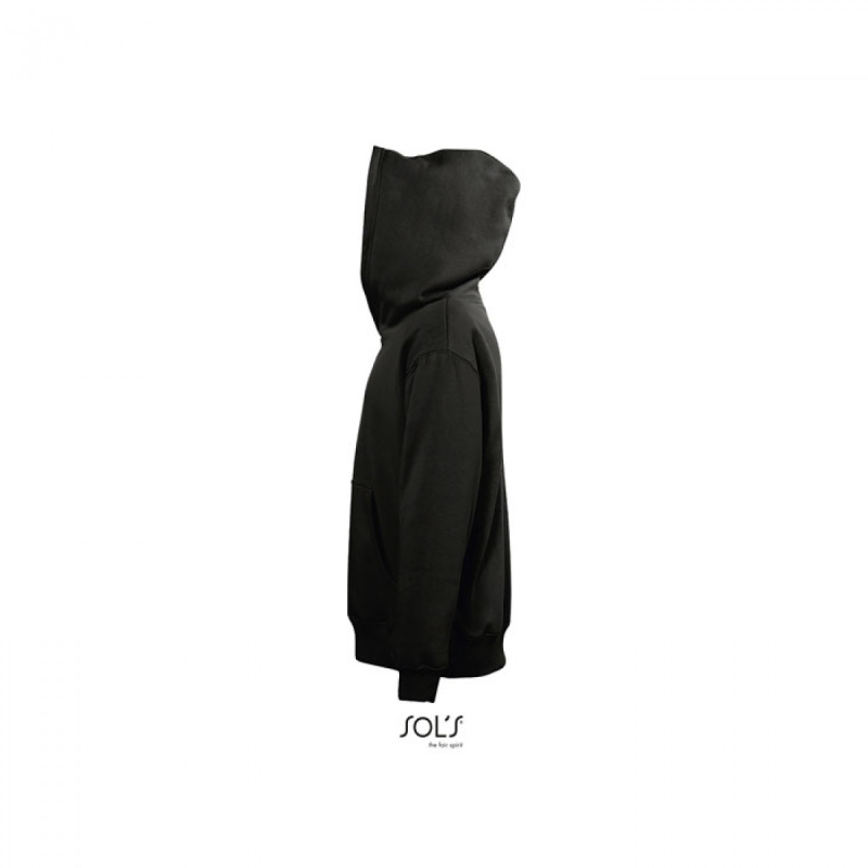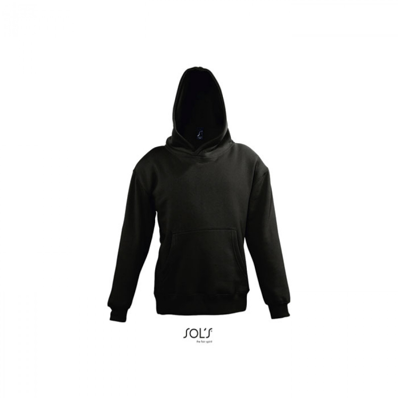SOL'S SLAM KIDS. Dětská mikina s kapucí. Materiál: 50% Ringspun bavlna a 50% polyesterový kartáčovaný fleece 280. Vsazené rukávy, klokaní kapsa, podšitá kapuce bez stahovací šňůrky. OEKO-TEX®. Prodává se pouze s potiskem.