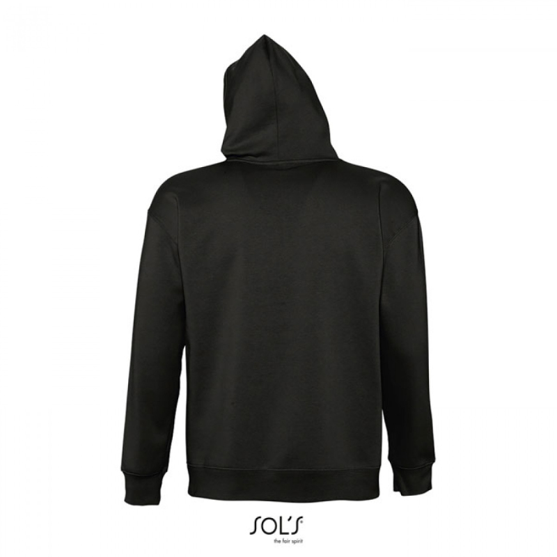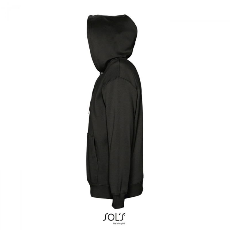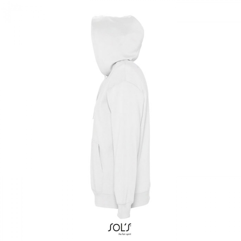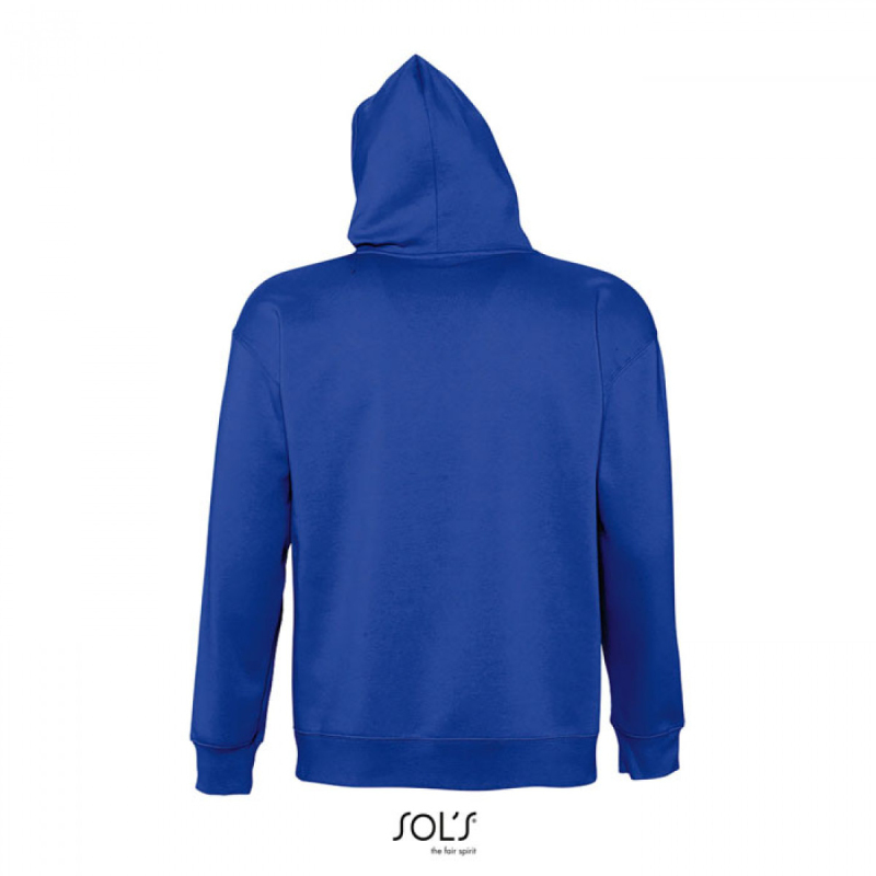 SOL'S SLAM, unisex mikina s kapucí. Kapuce bez podšívky se šňůrkou tón v tónu, žebrovaný úplet v pase s elastanem, klokaní kapsa. Materiál: 320g/m², 50% prstencová bavlna, 50% polyester, OEKO-TEX®. Dostupné i v dětské velikosti.