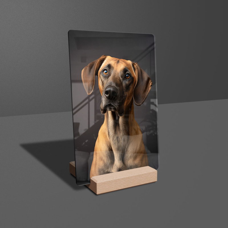 Dárková deska s digitální grafikou psa z akrylového skla.